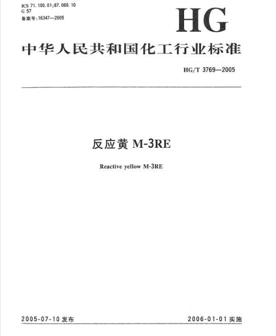 HG/T 3769适用于反应黄M-3RE的质量检验。该产品主要用于棉、黏胶、丝绸等纤维的染色。