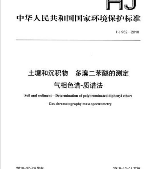 HJ 952规定了测定土壤和沉积物中多溴二苯醚的气相色谱-质谱法。