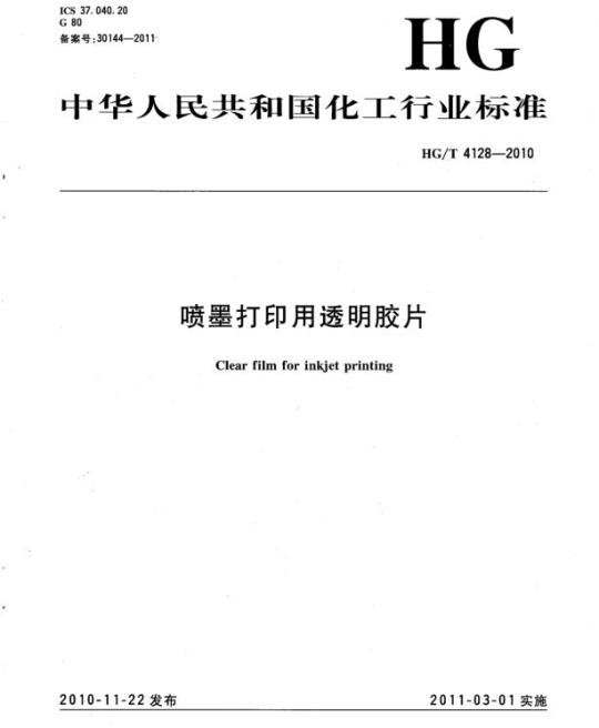 HG/T 4128适用于水基墨水喷墨打印的透明胶片。
