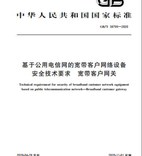 GB/T 38799适用于基于公用电信网的宽带客户网络中的网关。