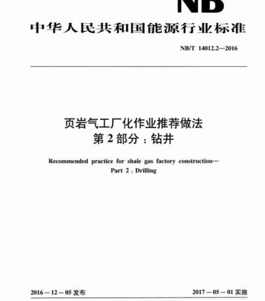 NB/T 14012.2适用于陆上页岩气工厂化钻井作业。