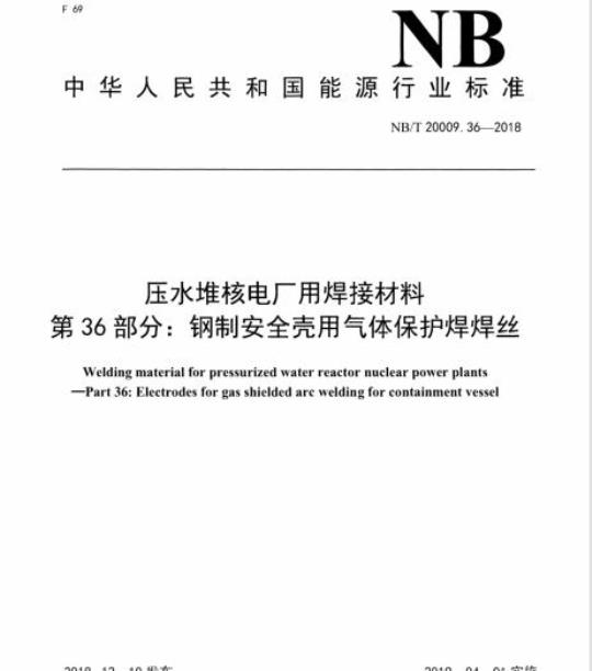 NB/T 20009.36适用于压水堆核电厂核岛钢安全壳熔化极气体保护焊用焊丝。