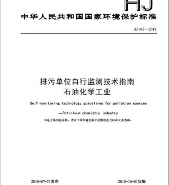 HJ 947提出了石油化学工业排污单位自行监测的一般要求、监测方案制定、信息记录和报告的基本内容和要求。