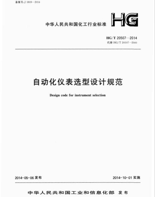 Design code for instrument selectionHG/T20507—2014