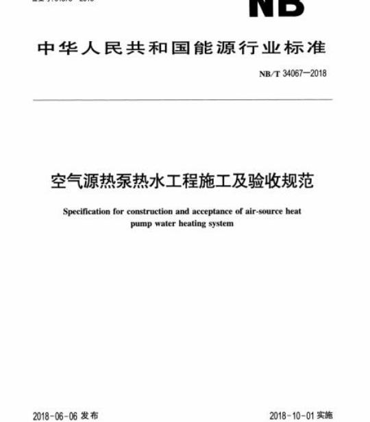 NB/T 34067规定了商业或工业用空气源热泵热水工程的施工、验收要求。