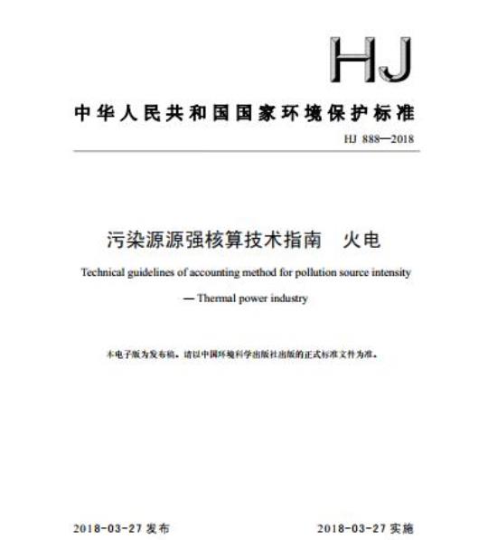 HJ 888规定了火电行业废气污染物、废水污染物、噪声、固体废物源强核算的基本原则、内容、核算方法及要求。