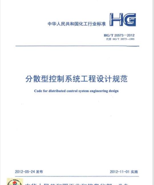 中文名称:代替 HG/T 20573-1995 分散型控制系统工程设计规范
