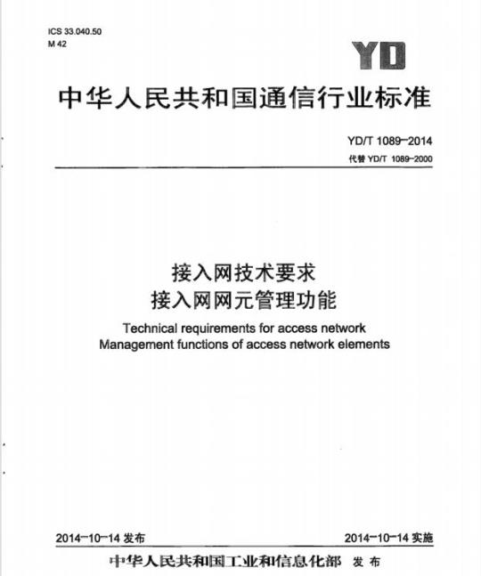 YD/T 1089规定了接入网网元通用管理功能要求和接入网网元管理系统自身的基本要求。