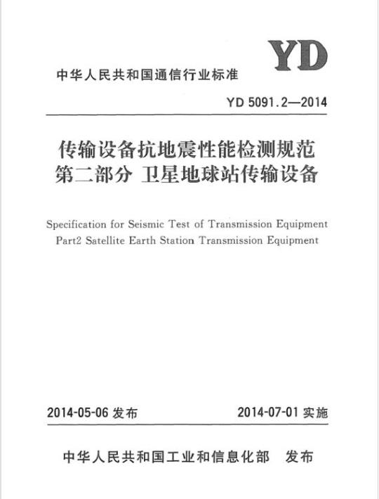 YD 5091.2-2014.Specification for Seismic Test of Transmission Equipment Part 2 Satellite Earth Station Transmission Equipment.
