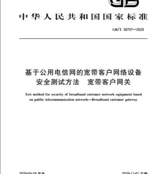 GB/T 38797适用于基于公用电信网的宽带客户网络中的宽带客户网关。