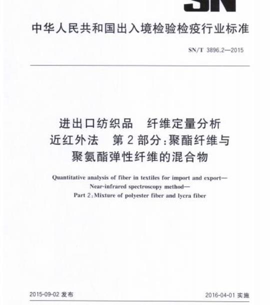 Quantitative analysis of fiber in textiles for import and export-Near-infrared spectroscopy method-Part2:Mixture of polyester fiber and lycra fiber2015-09-02发布