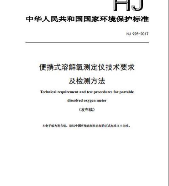 HJ 925规定了便携式溶解氧测定仪的技术要求、性能指标及检测方法。