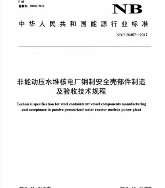 NB/T 20457适用于压水堆核电厂钢制安全壳部件的制造和验收。