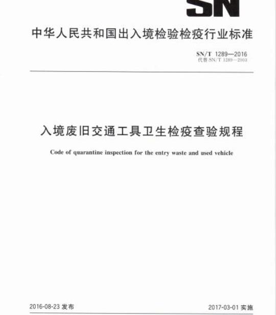 SN/T 1289规定了人境废旧交通工具卫生检疫查验的要求、内容、方法、结果判定和处置原则。
