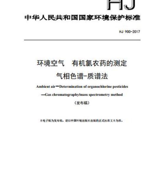 HJ 900规定了测定环境空气中有机氯农药的气相色谱一质谱法。