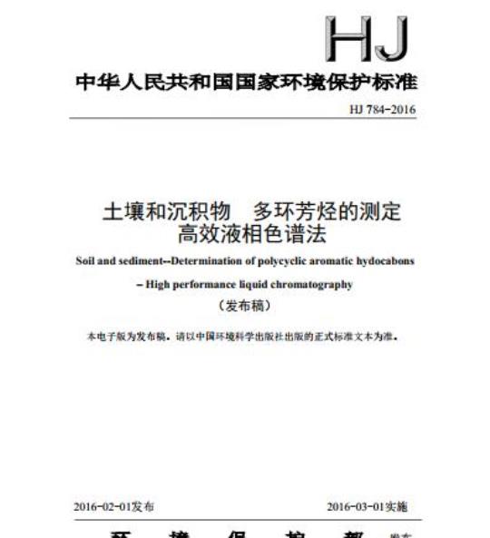 HJ 784-2016.Soil and sediment-Determination of polycyclic aromatic hydocabons-High performance liquid chromatography.
