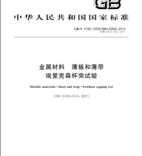 GB/T 4156规定了用埃里克森杯突试验测定金属薄板和薄带在拉延成型时承受塑性变形能力的方法。