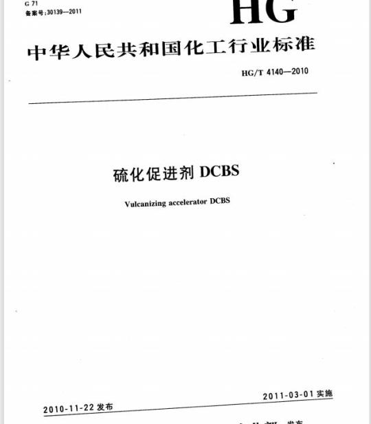 HG/T 4140适用于由二环己胺、硫化促进剂MBT经氧化制成的硫化促进剂DCBS。