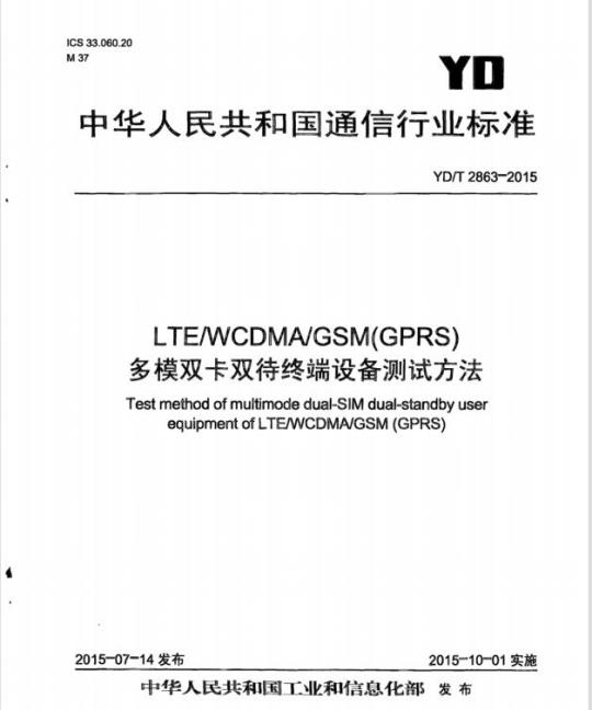 YD/T 2863适用于LTE/WCDMA/GSM(GPRS)多模双卡双待终端设备。