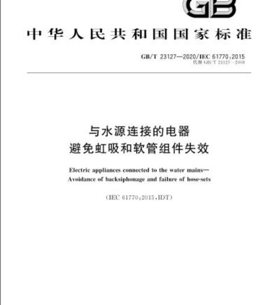 GB/T 23127-2020.Electric appliances connected to the water mains-Avoidance of backsiphonage and failure of hose-sets.