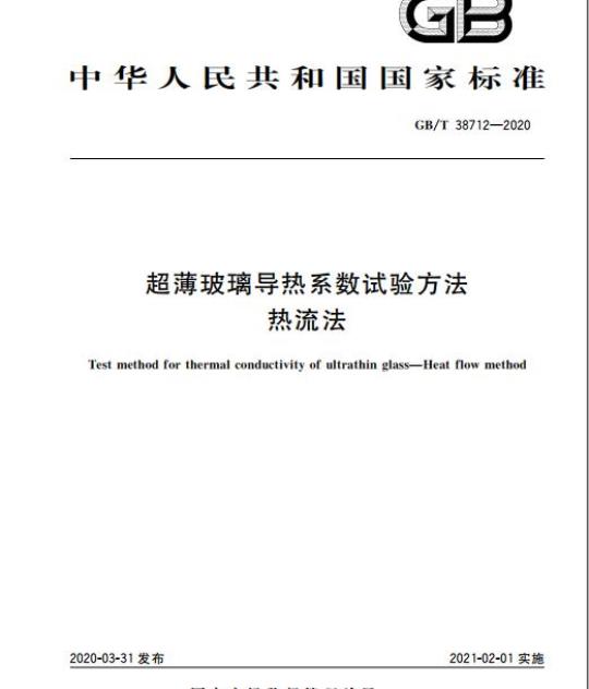 GB/T 38712-2020.Test method for thermal conductivity of ultrathin glass- Heat flow method.
