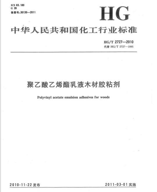 HG/T 2727适用于聚乙酸乙烯酯乳液木材胶粘剂。