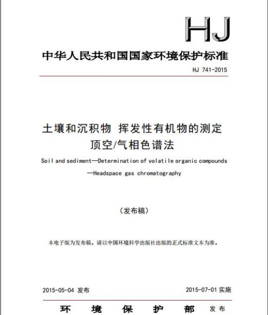HJ 741-2015.Soil and sediment-Determination of volatile organic compounds一Headspace gas chromatography.