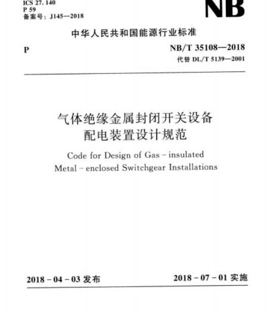 Code forDesign of Gas-insulatedMetal -enclosed Switchgear InstallationsNB/T35108—2018
