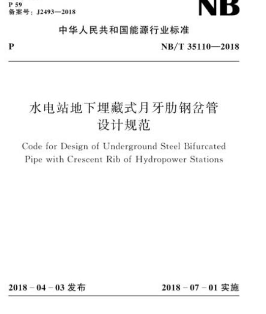 Code for Design of Underground Steel BifurcatedPipe with Crescent Rib of Hydropower StationsNB/T35110—2018