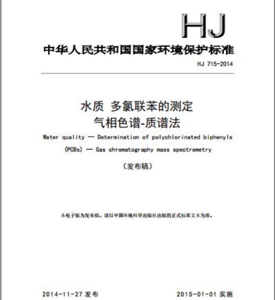 HJ 715规定了测定水中18种多氯联苯的气相色谱-质谱法。