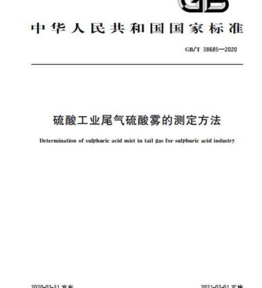 GB/T 38685规定了硫酸工业排放尾气中硫酸雾的测定方法。