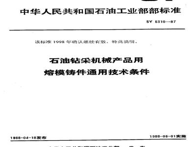 SY 5310-1987 石油钻采机械产品用熔模铸件通用技术条件 SY5310-1987 标准下载解压密码:www.bzxz.net