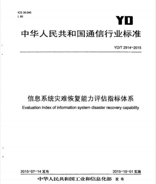 YD/T 2914规定了信息系统灾难恢复能力的评估指标体系。