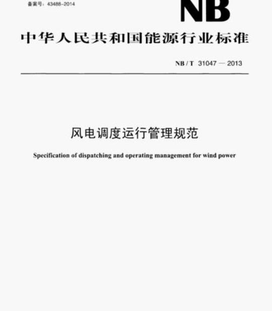 NB/T 31047规定了电网调度机构和并网运行风电场的调度管理要求。