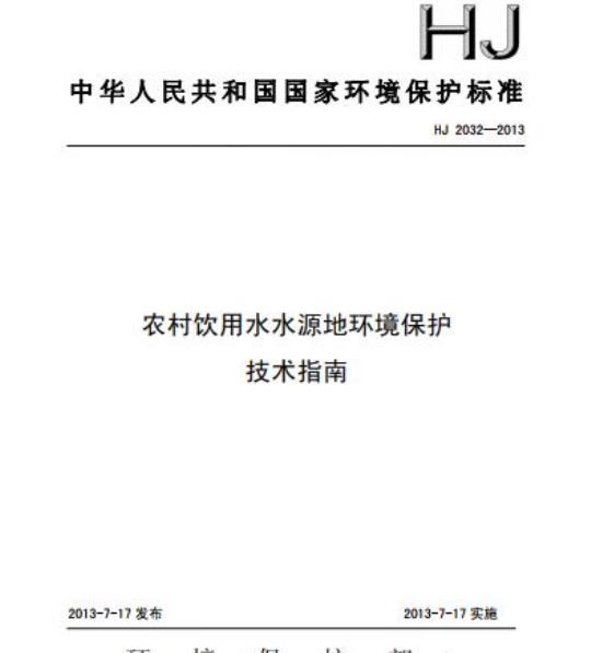 HJ 2032-2013.Technical guide for environmental Protection of rural Drinking water sources.
