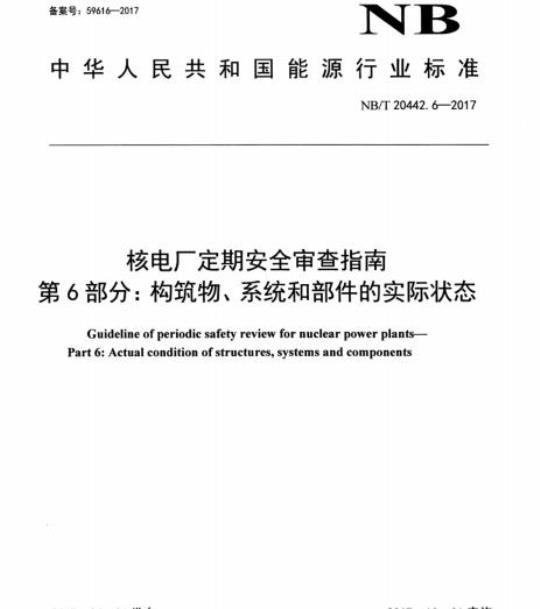 NB/T 20442.6-2017.Guideline of periodic safety review for nuclear power plants-Part 6: Actual condition of structures, systems and components.