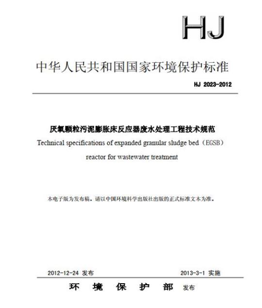 HJ 2023-2012.Technical specifications of expanded granular sludge bed ( EGSB) reactor for wastewater treatment.