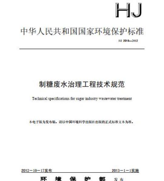 HJ 2018规定了制糖废水治理工程的设计、施工安装、验收和运行管理的技术要求。