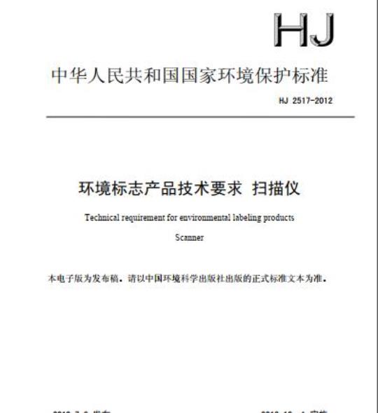 HJ 2517-2012.Technical requirement for environmental labeling products Scanner.