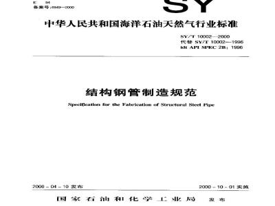SY/T 10002-2000 结构钢管制造规范 SY/T10002-2000 标准下载解压密码:www.bzxz.net