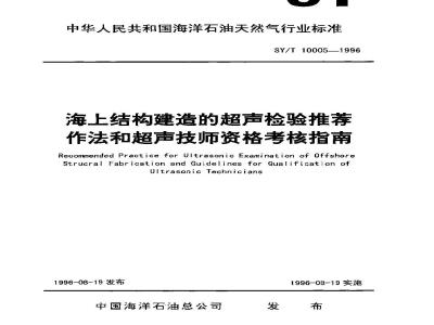 SY/T 10005-1996 海上结构建造的超声检验推荐作法和超声技师资格的考试指南 SY/T10005-1996 标准下载解压密码:www.bzxz.net
