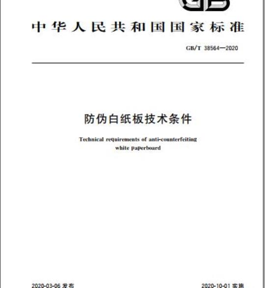 GB/T 38564-2020.Technical requirements of anti-counterfeiting white paperboard.