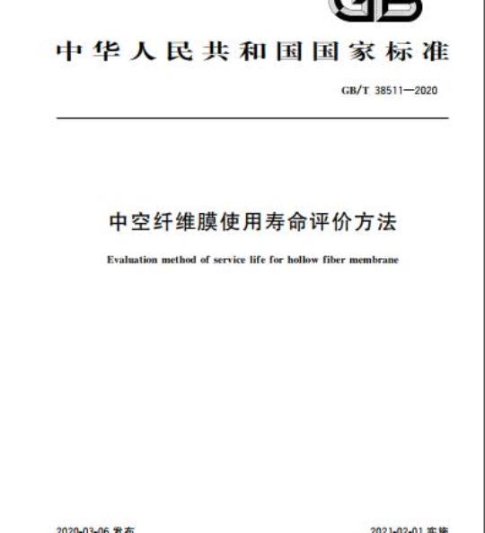 GB/T 38511规定了水处理用中空纤维膜使用寿命的评价方法。