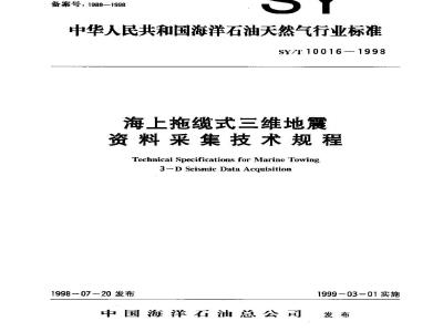 SY/T 10016-1998 海上拖缆式三维地震资料采集技术规程 SY/T10016-1998 标准下载解压密码:www.bzxz.net