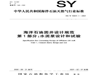 SY/T 10022.1-2000 海洋石油固井设计规范 第1部分:水泥浆设计和试验 SY/T10022.1-2000 标准下载解压密码:www.bzxz.net