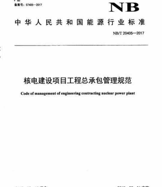 核电建设项目工程总承包管理规范本标准规定了核电工程建设期间的工程总承包管理要求。NB/T20405—2017