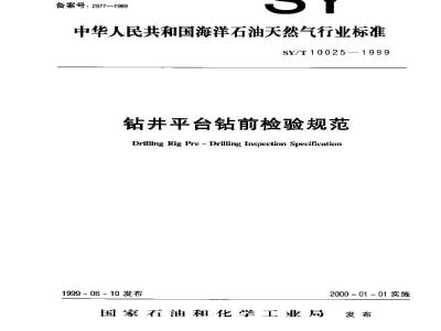 SY/T 10025-1999 钻井平台钻前检验规范 SY/T10025-1999 标准下载解压密码:www.bzxz.net