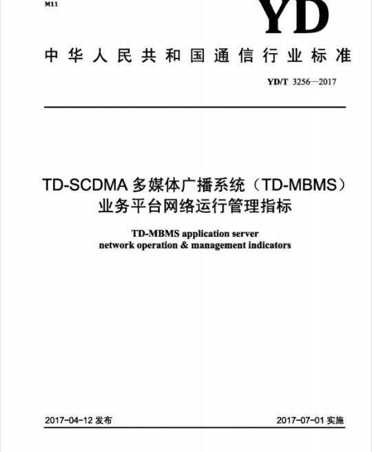 YD/T 3256规定了TD-SCDMA多媒体广播系统的业务平台和基础网络的质量指标。