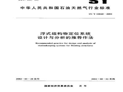 SY/T 10040-2002 浮式结构物定位系统设计与分析的推荐作法 SY/T10040-2002 标准下载解压密码:www.bzxz.net