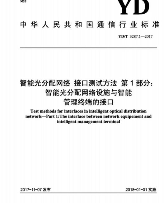 YD/T 3287.1-2017.Test methods for interfaces in intelligent optical distribution network-Part 1:The interface between network equipement and intelligent management terminal.